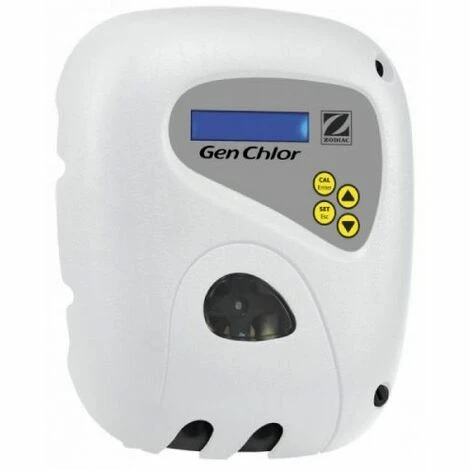 Régulateur automatique de chlore liquide Zodiac GenChlor (WW000254). Il analyse en temps réel la concentration de chlore dans l’eau, et injecte le chlore liquide dans la piscine pour maintenir un taux constant de désinfectant (sans manque et sans surdosage).Nouveauté : remplace le Zodiac Chlor Perfect (depuis 2020)Volume piscine : 150 m3 maxInjection automatique et proportionnelle (plus précis)Fonction Boost (augmentation de la chloration)Étalonnage semi-automatique facileSécurité contre le surdosage OFAGarantie : 2 ans