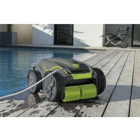 Robot aspirateur de piscine Zodiac Vortex GV3520 (identique au modèle OV3505 avec coloris vert). Idéal pour le nettoyage des piscines jusqu’à 12 x 6 m.6 programmes de nettoyage au choixFond seul (1h-1h30-2h) / Fond, parois, ligne d’eau (2h-2h30-3h)Aspiration Vortex cyclonique : 30%+ puissanteSystème de navigation Active Motion SensorTélécommande Kinetic : pilotage par capteur de mouvementCompatible toutes formes, tous fonds, tous revêtementsPneus pour carrelage et revêtement glissant de sérieGrande capacité d’aspiration et de stockage (5L)Livré avec chariot de transport